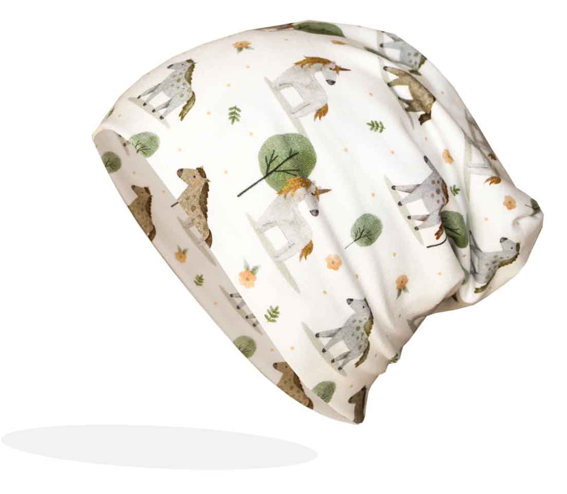 Beanie Mütze (Pferde) doppelt genäht in Kopfgröße 51 u. 53 cm Art,-Nr.4140