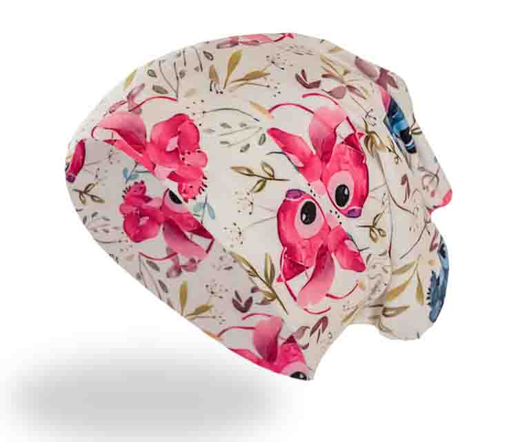 Beanie Mütze (Blümchen) doppelt genäht Kopfgröße 52/53 u. 54 cm Art,-Nr.4160