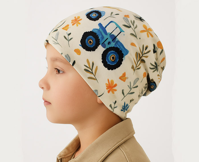 Beanie Mütze (Traktor) doppelt genäht Kopfgröße 53 cm Art,-Nr.4154