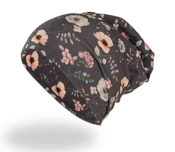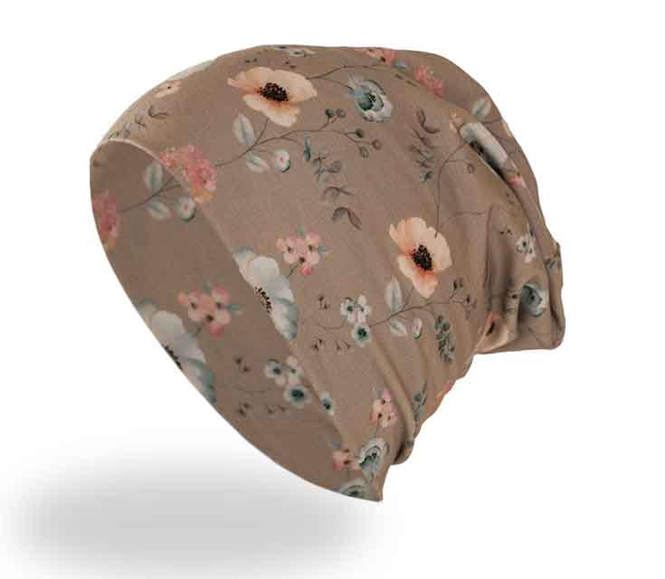 Beanie Mütze (Blumen) doppelt genäht Kopfgröße 52 u. 53 cm Art,-Nr.4165