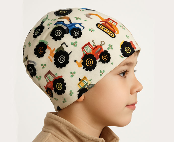 Beanie Mütze (Traktor) doppelt genäht Kopfgröße 52 cm Art,-Nr.4184
