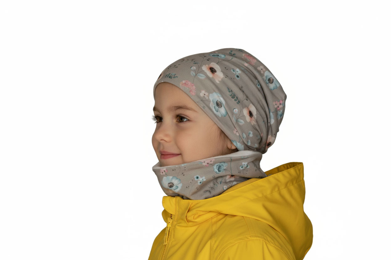 Mütze und Loop gefüttert in Kopfgröße  52 + 53 cm Art.Nr. ML7009 (Blumenmädchen)
