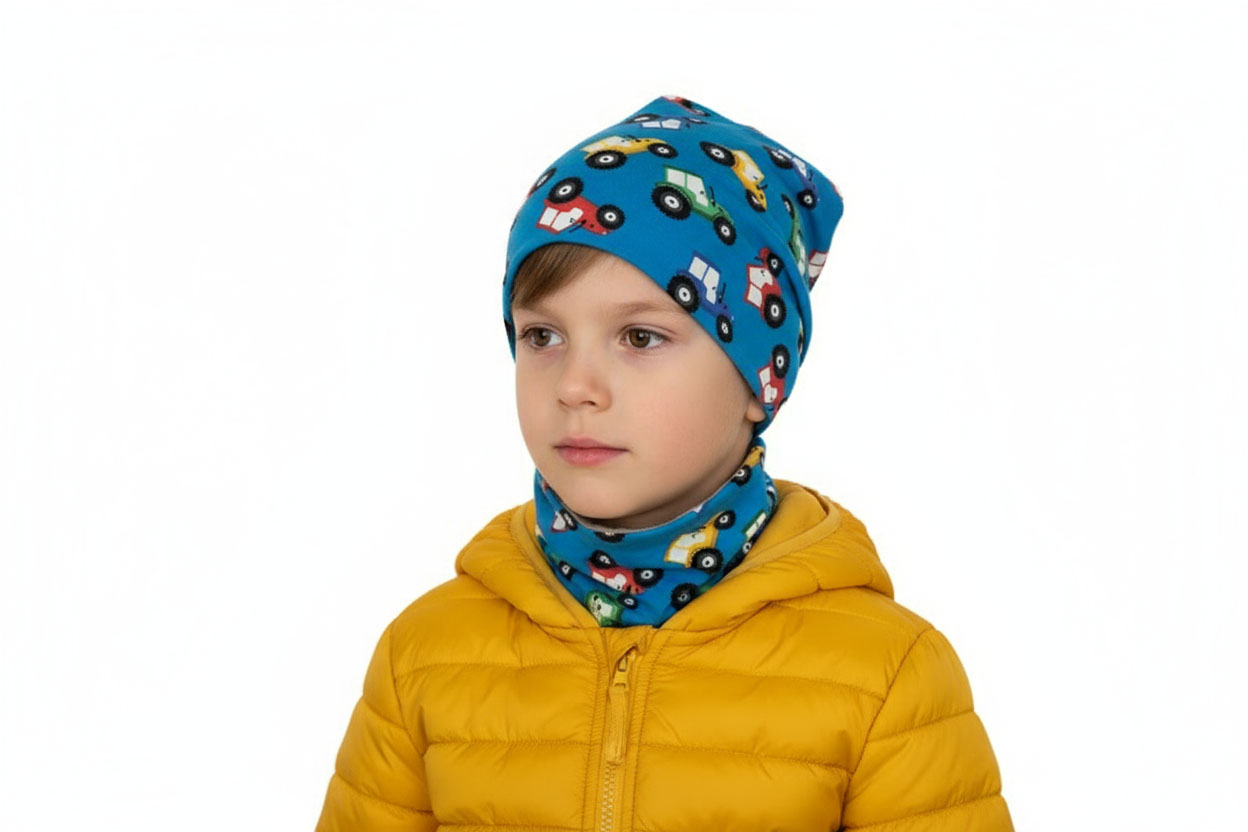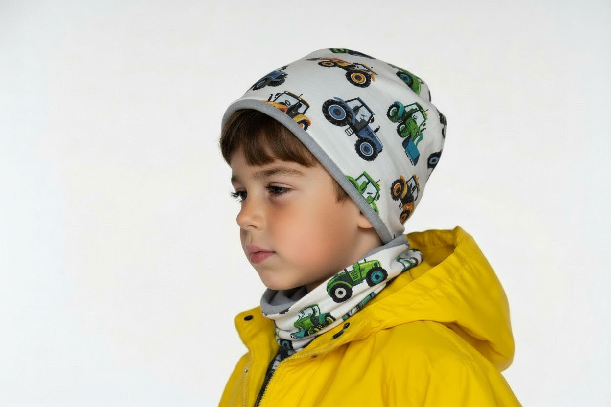 Mütze und Loop gefüttert in Kopfgröße 62 cm Art.Nr. ML7010 (Traktor)