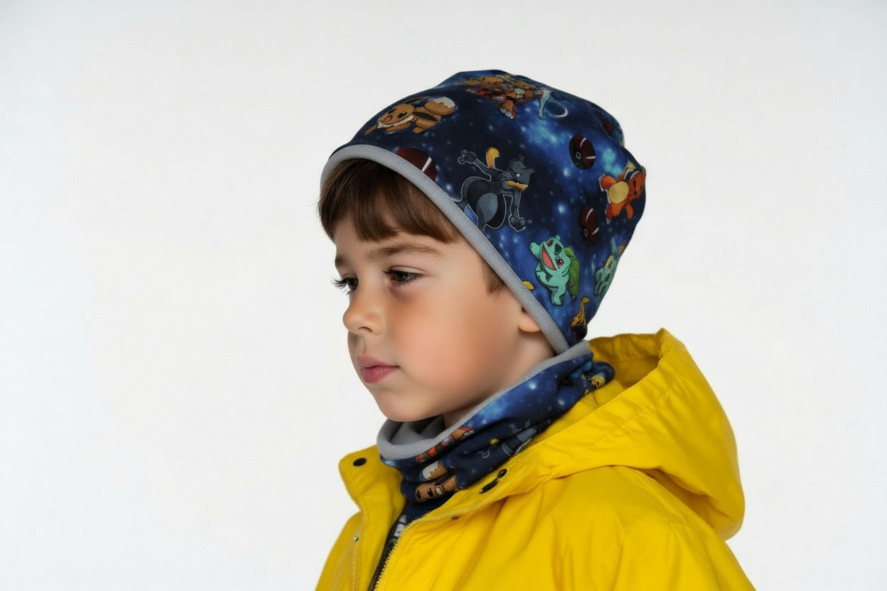Mütze und Loop gefüttert in Kopfgröße  54 cm Art.Nr. ML7002 (Pokemon)