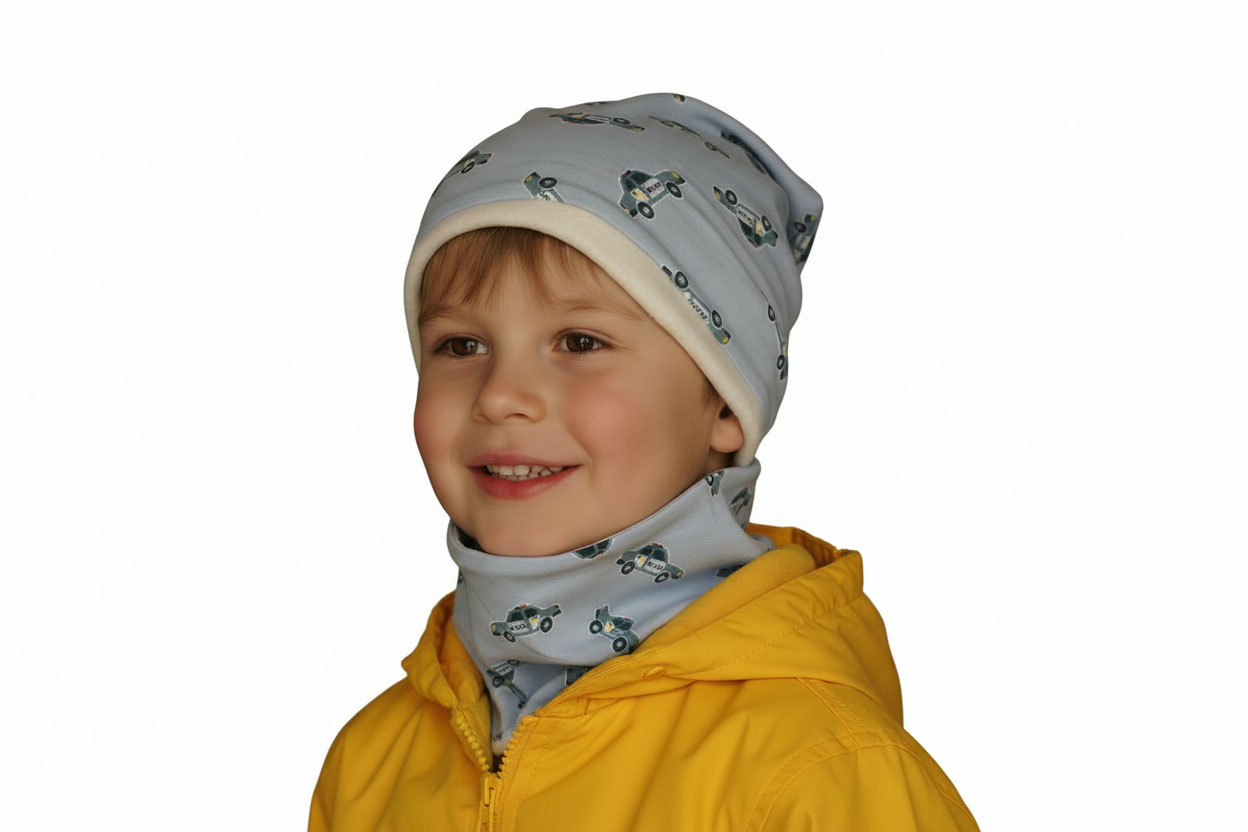 Mütze und Loop gefüttert in Kopfgröße 52 + 54 cm Art.Nr. ML7006 (Fahrzeuge)